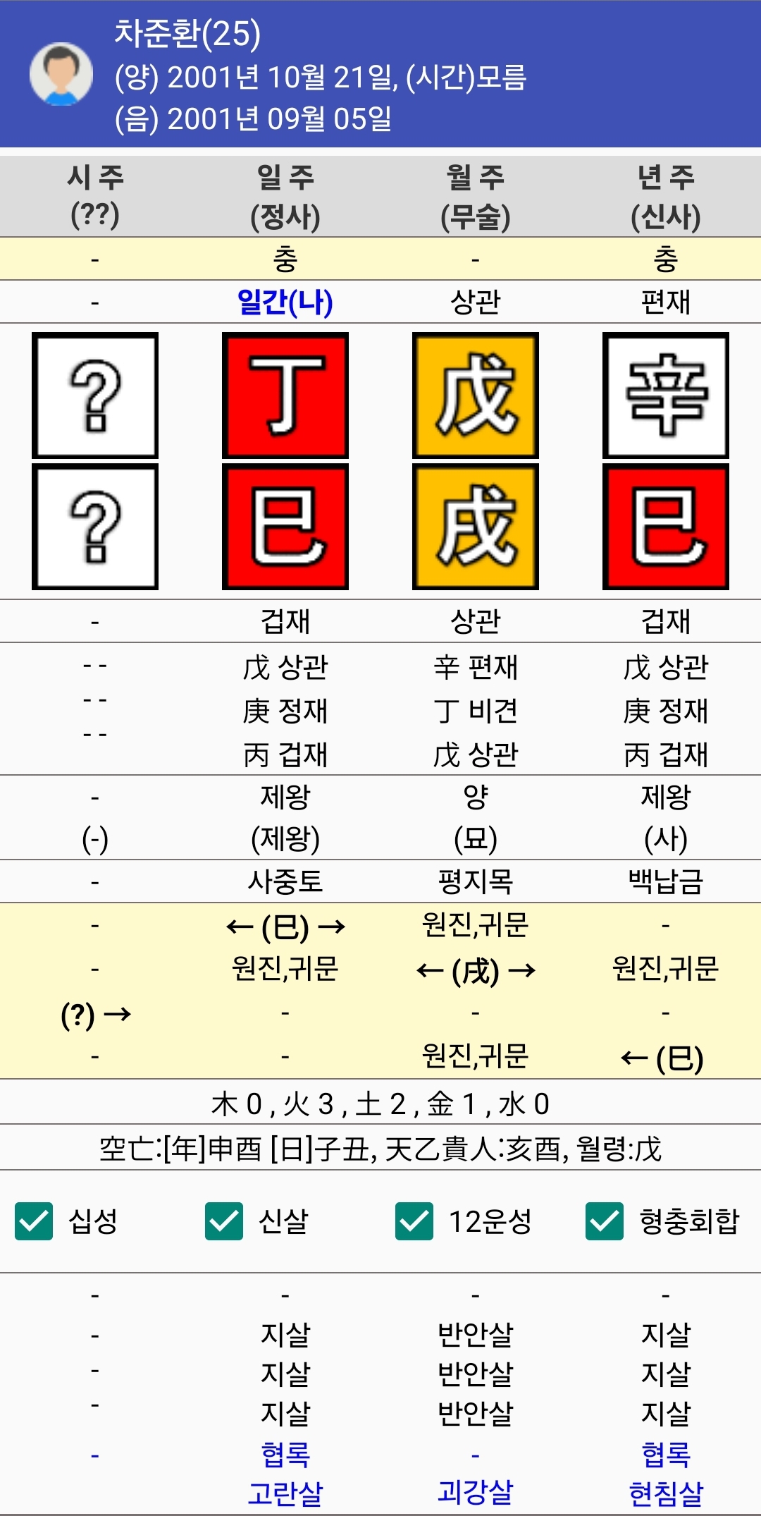 차준환선수의 사주는 술월에 태어난 정사일주입니다.