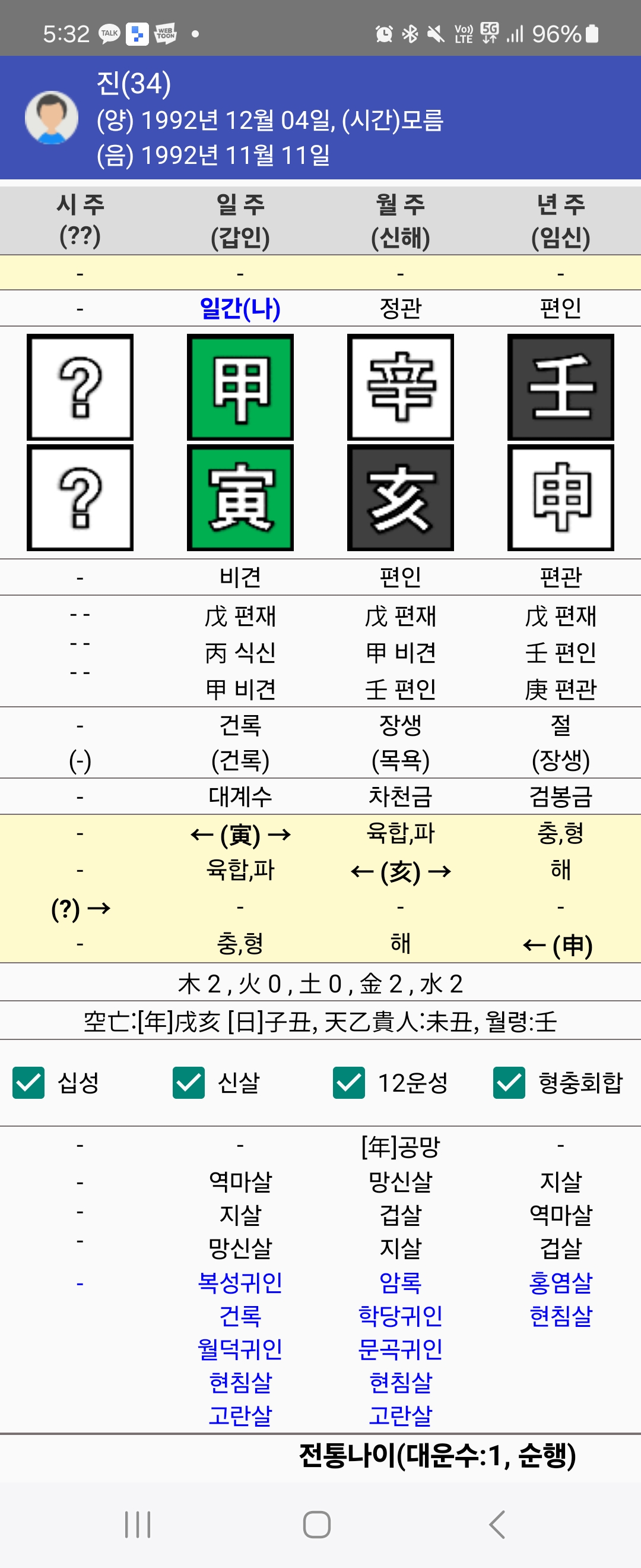 방탄소년단(BTS) 진 사주는 해월에 갑인일주입니다. 격은 편인격입니다.